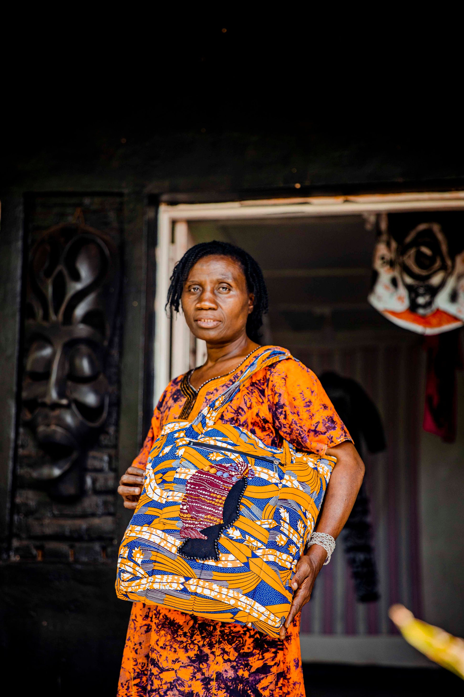 Made with Igitenge - a traditional Rwandan fabric. Each fabric contains different colors. Choose a color that you want to be the main preference.